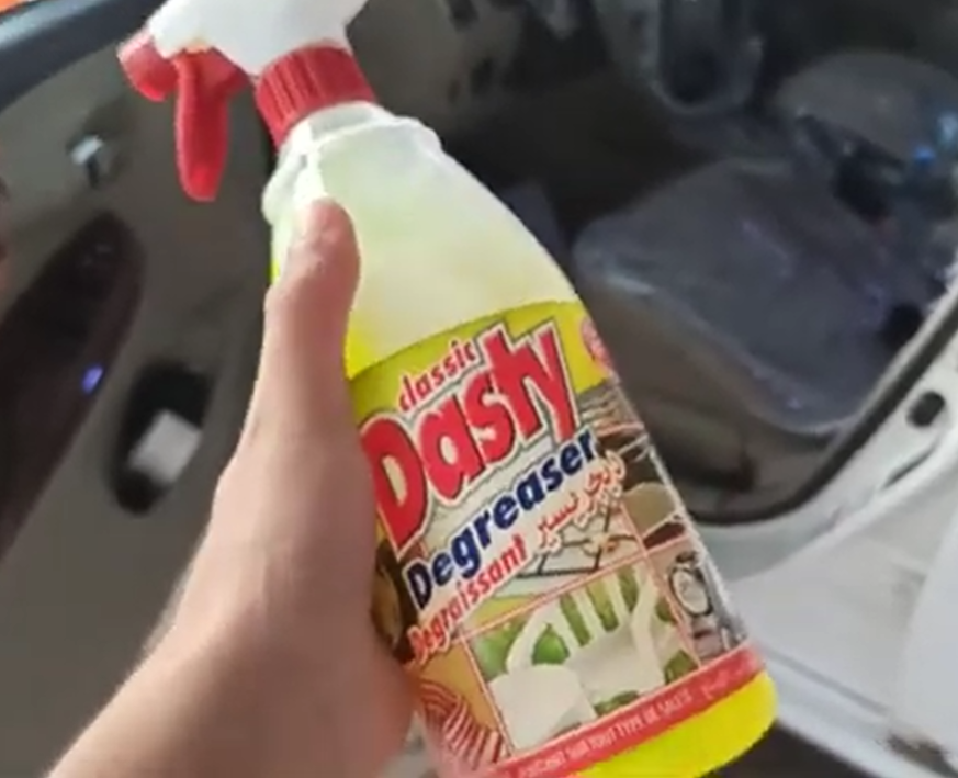 Ook bij de auto kan Dasty van pas komen. Velgen, kunststof interieurdelen en bepaalde vlekken op bekleding maak je er netjes mee. Wees wel zuinig bij lak, kunststof panelen en in de motorruimte, en spoel altijd goed na.