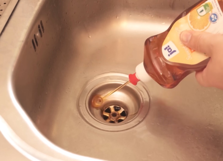 Klinkt bijna te simpel, maar het werkt echt. Afwasmiddel breekt vet en aanslag af, precies wat zich meestal in je afvoer ophoopt.