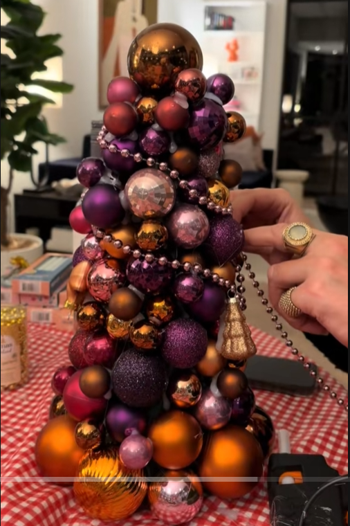 De boom van kerstballen past perfect bij de trend van warm en huiselijk stylen. Compact genoeg voor kleine hoekjes, maar opvallend genoeg om meteen de aandacht te trekken. Een echte blikvanger die laat zien dat je met eenvoudige materialen iets unieks kunt maken.