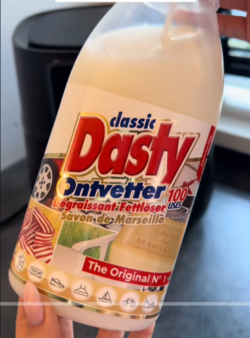 Dasty is een veelzijdige ontvetter die is ontwikkeld om vet, vuil en vlekken aan te pakken op allerlei oppervlakken. Met de Marseille zeep-variant geef je de binnenkant van je airfryer een grondige poetsbeurt én laat je ’m weer lekker fris ruiken. Het product: