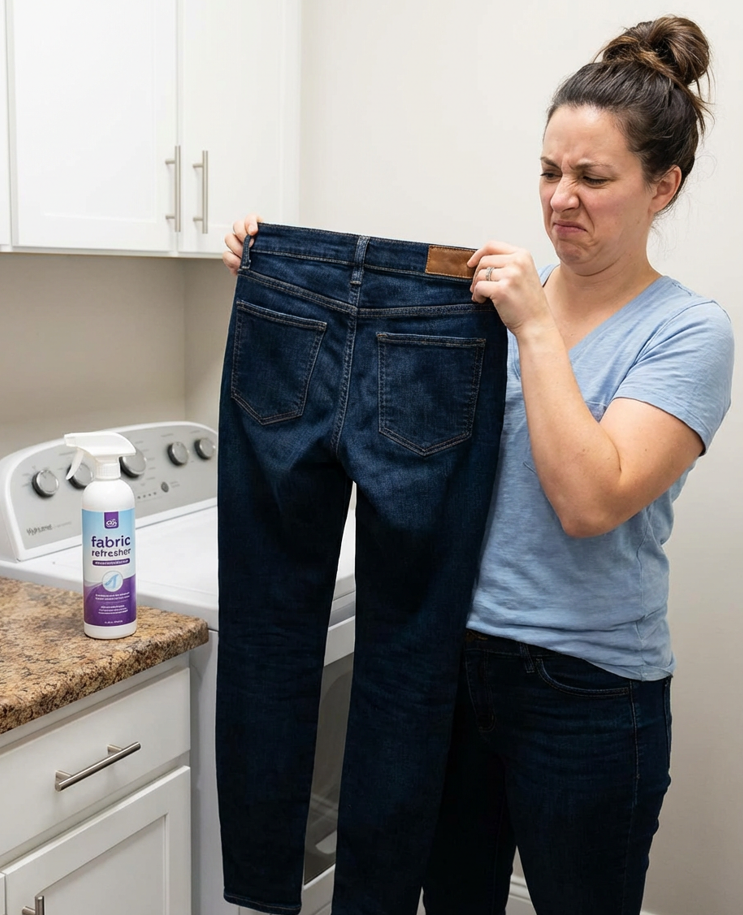 Moet je snel? Een textielspray kan tijdelijk helpen. Spray lichtjes aan de binnenkant van het kruis en laat goed drogen. Handig als noodoplossing, maar wassen blijft de beste aanpak.