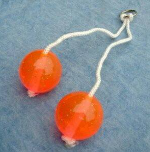 - twee bollen met een koordje en koppelstuk aan elkaar gezet