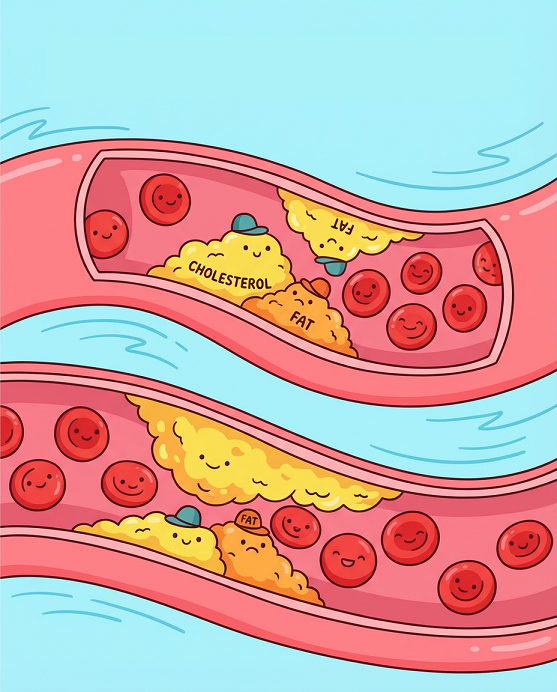 Wanneer vetten zich in de vaatwand ophopen, wordt de doorgang nauwer. Je hart moet harder werken, waardoor je bloeddruk stijgt. Die combinatie verhoogt het risico op hart- en vaatproblemen, dus regelmatig meten loont.